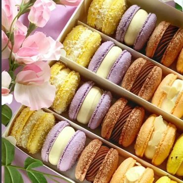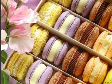 Приготовление макарон на французской меренге: Список необходимого инвентаря Рецепт крышек макарон на французской меренге Видео приготовления крышек Рецепты 3 начинок макарон: Пряничный латте Лаванда с черной смородиной Манго/Маракуйя Видео приготовления конфи Видео приготовления ганаша Видео по