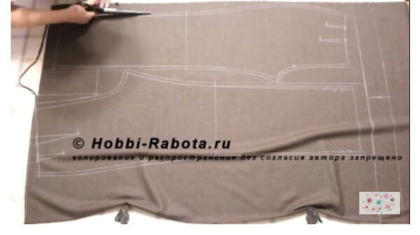 После построения чертежа, показана примерка бумажных деталей (задней и передней половинок) на столе. Показано, как откорректировать их в бумаге, до кроя на ткани.