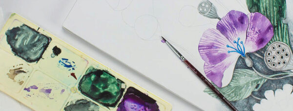 Смело уходите в свободный творческий полет, не зацикливаясь на ботаническом сюжете, который развивает на уроке Светлана — в этой технике будут не менее эффектно смотреться и натюрморты, и портреты, и пейзажи, и абстрактные композиции. Возможно и неожиданное применение таких знакомых «в быту» вещей, которые Светлана использует как арт-материалы, раздвинет границы вашей креативности и сделает вашу «дружбу» с акварелью полем для самых неожиданных экспериментов с инструментами и приемами.