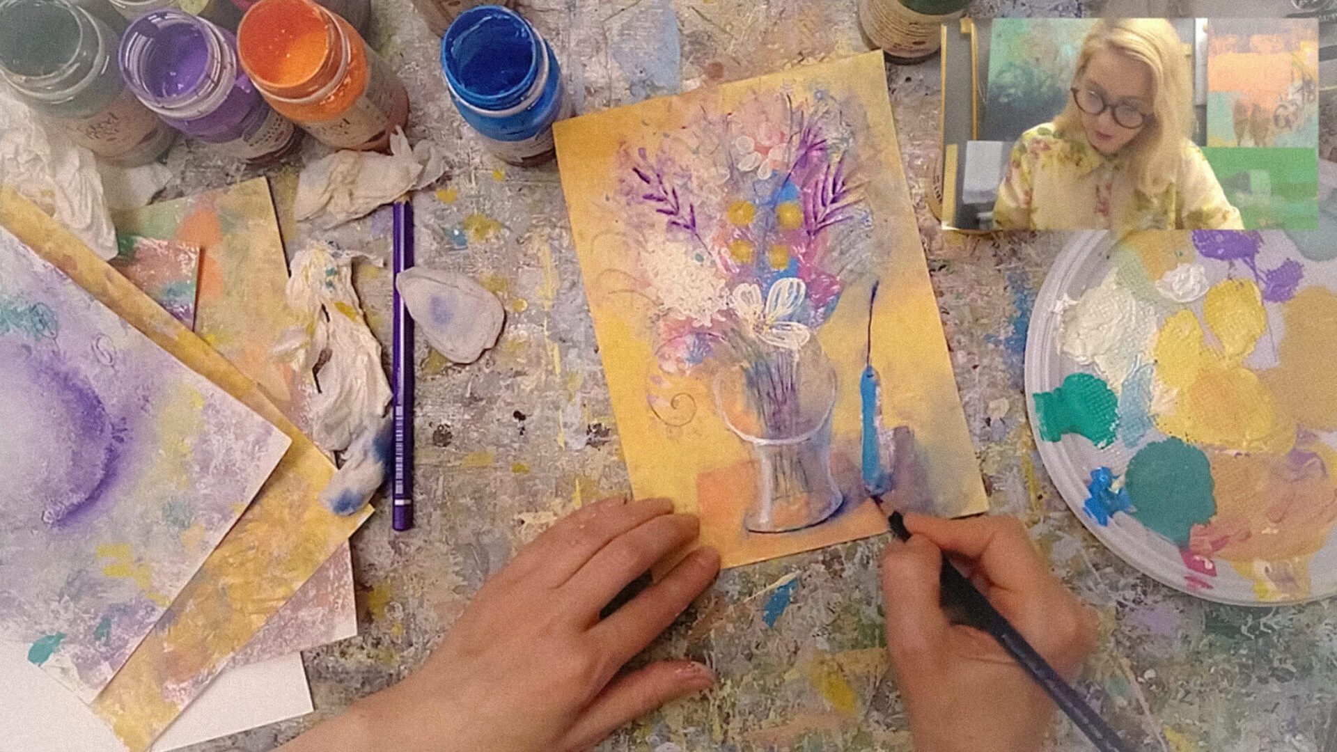 В ходе данного видеоурока мы вместе со Светланой применим технику и проработаем все её нюансы на практике, создавая натюрморт «Цветы в стеклянной вазе».