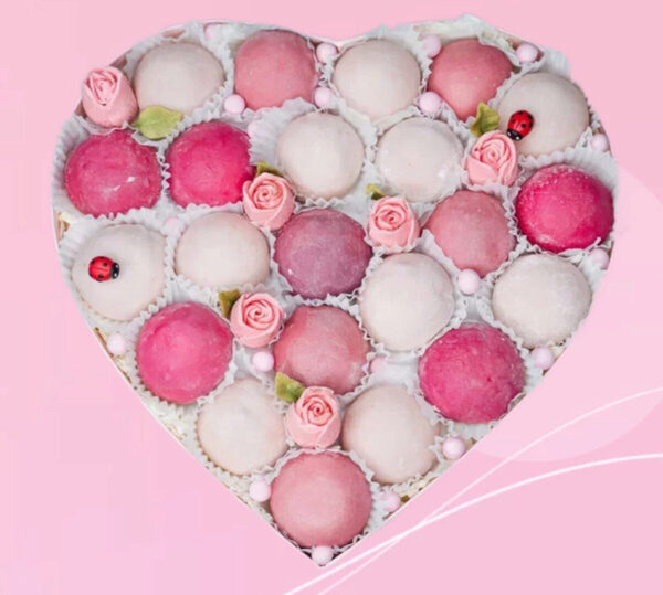 • Моти: «Махито клубника» (лаймовое тесто, клубничное центр в сливочном муссе)