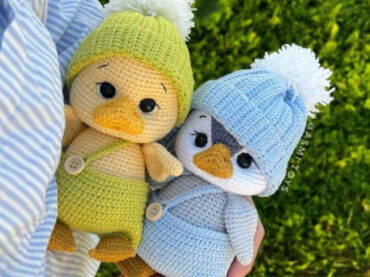 Предлагаю Вашему вниманию подробнейший мастер-класс по вязанию утенка крючком. Подробное описание с пошаговыми фотографиями в формате pdf (32 страницы). Также в МК входит описание чепчика для утенка. МК не содержит уроков по вязанию и рассчитан на тех, кто знает азы вязания крючком. При