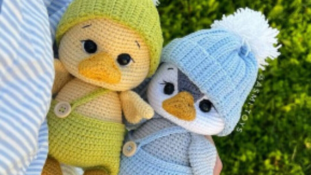 Мастер-класс по вязанию утёнка крючком. Два вида клюва. Из пришивных деталей клюв. Игрушка получается ~15 см.