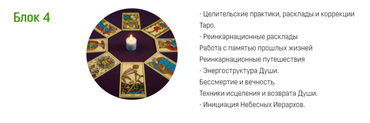 Блок 2: - Ангелы больших арканов. Продолжение - Ангелы малых арканов. - Ангелические печати. Сферы применения. Подключение ангелических каналов. - Магические ритуалы Этот курс уникален по своей информационной насыщенности. Он посвящен прохождению и изучению Ангелической структуры Таро. Мы