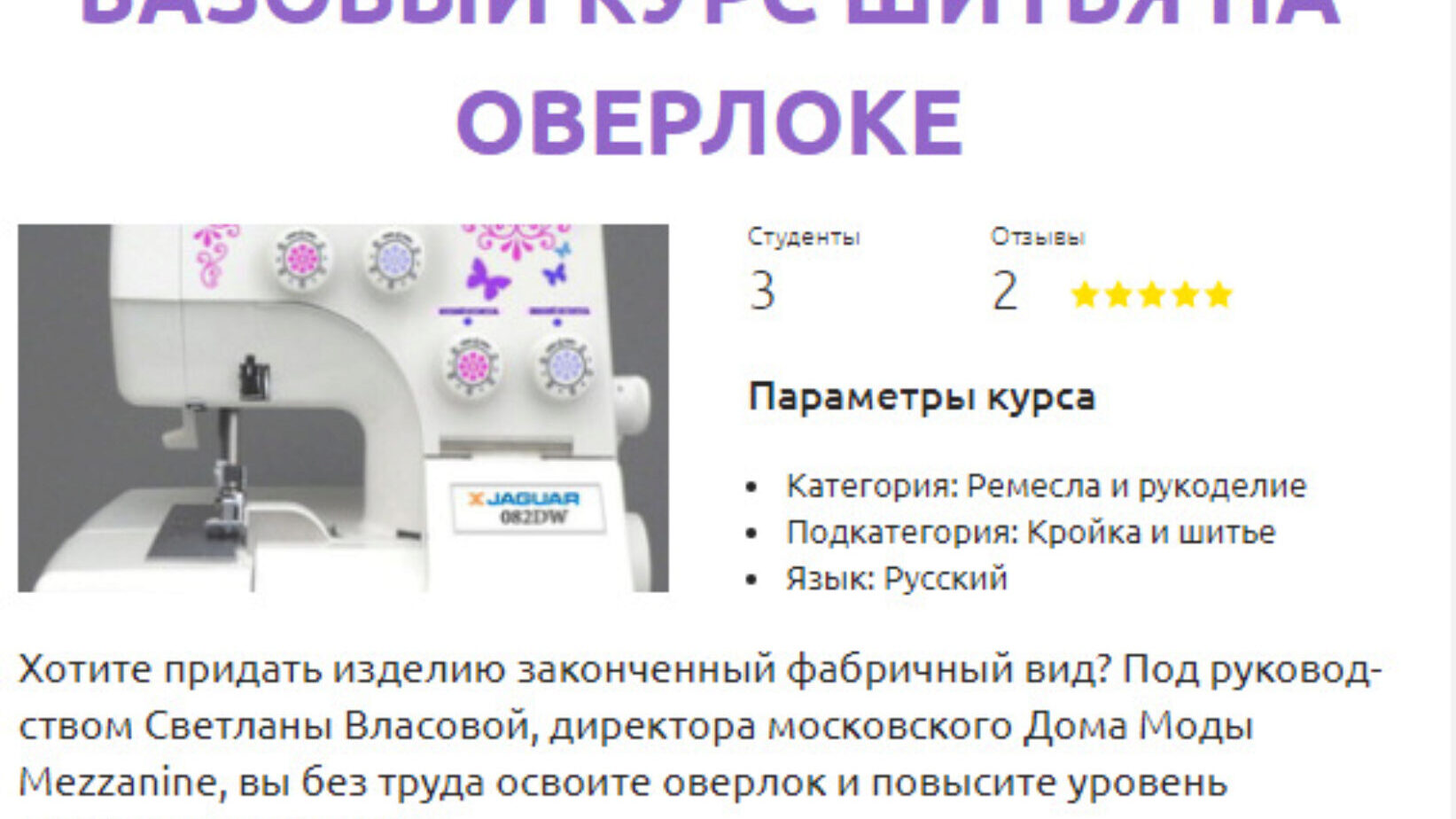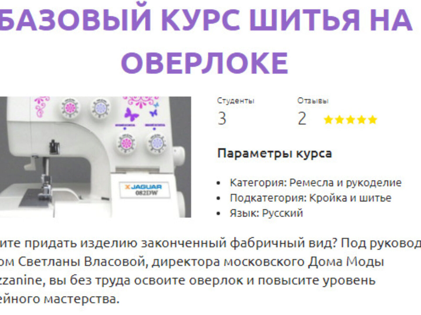 Отзывы о курсе «Базовый курс шитья на оверлоке» от Светланы Власовой