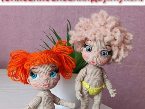 Вы получите два варианта оформления головы: ротика, глазок, глазниц, причёсок, а также вязание и сборка туловища.
