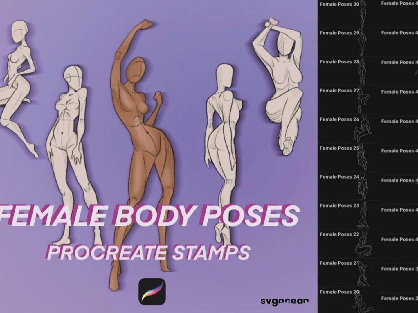 svgocean «Кисти для создания женской позы / Female Pose Procreate Brushes»