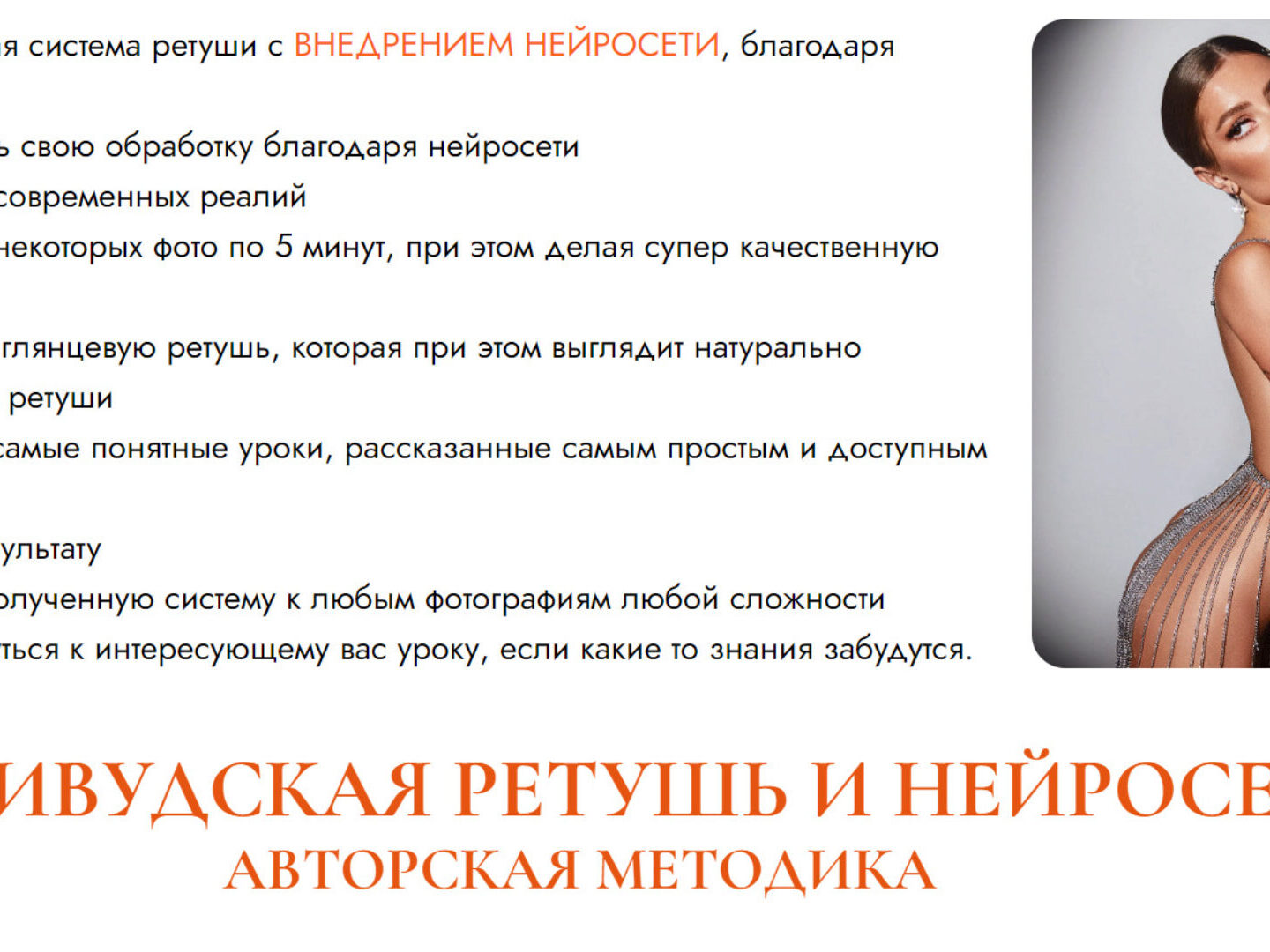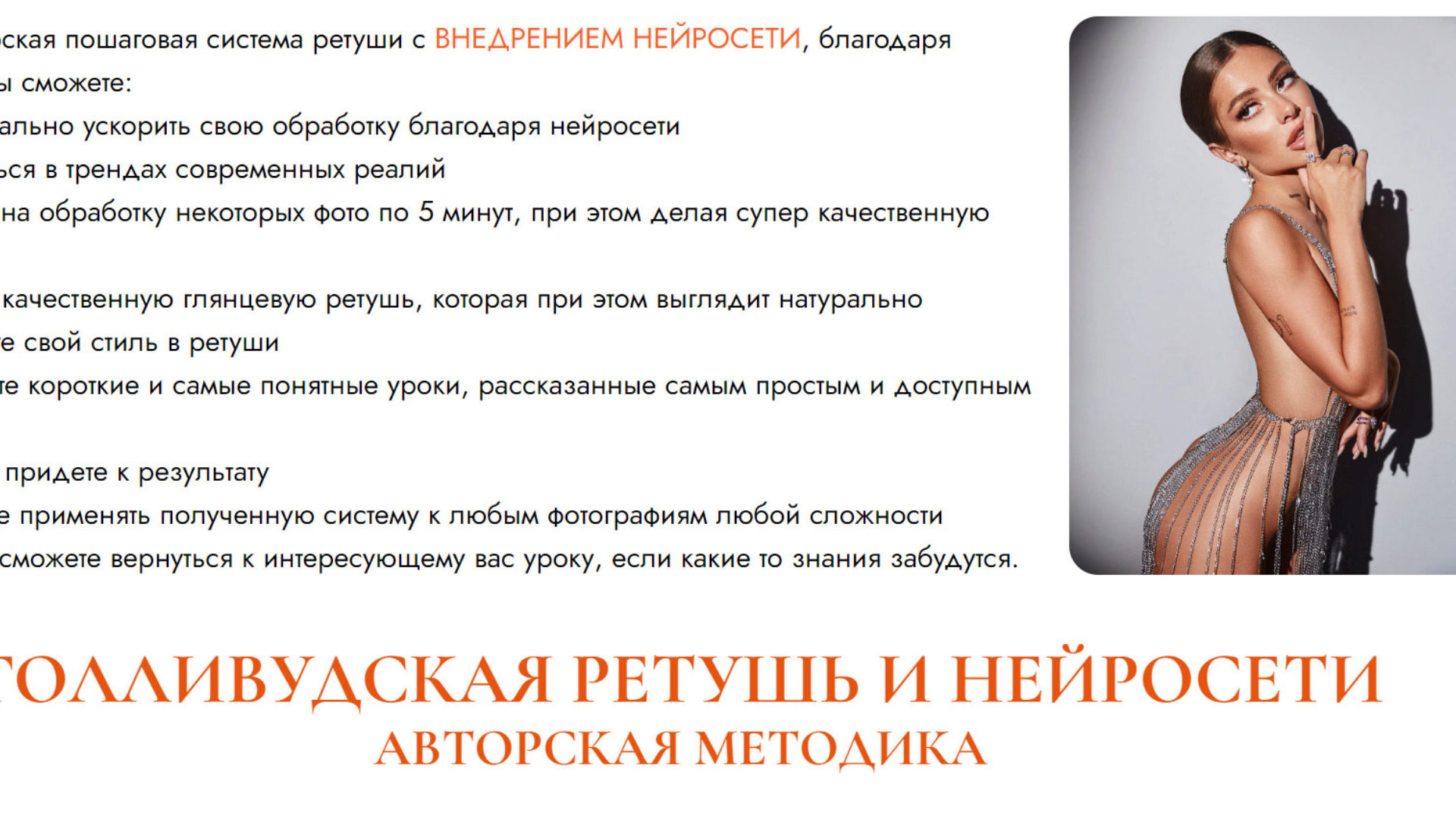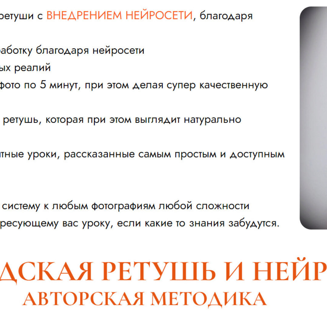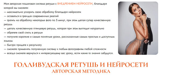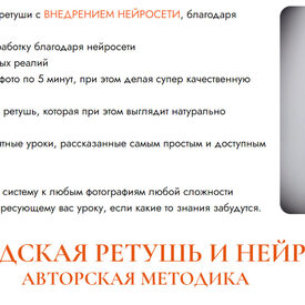 Так же входит модуль по нейросетям, где максимально просто и понятно объясняю, как внедрить нейросеть в ретушь фото, тем самым упрощая и ускоряя свою работу