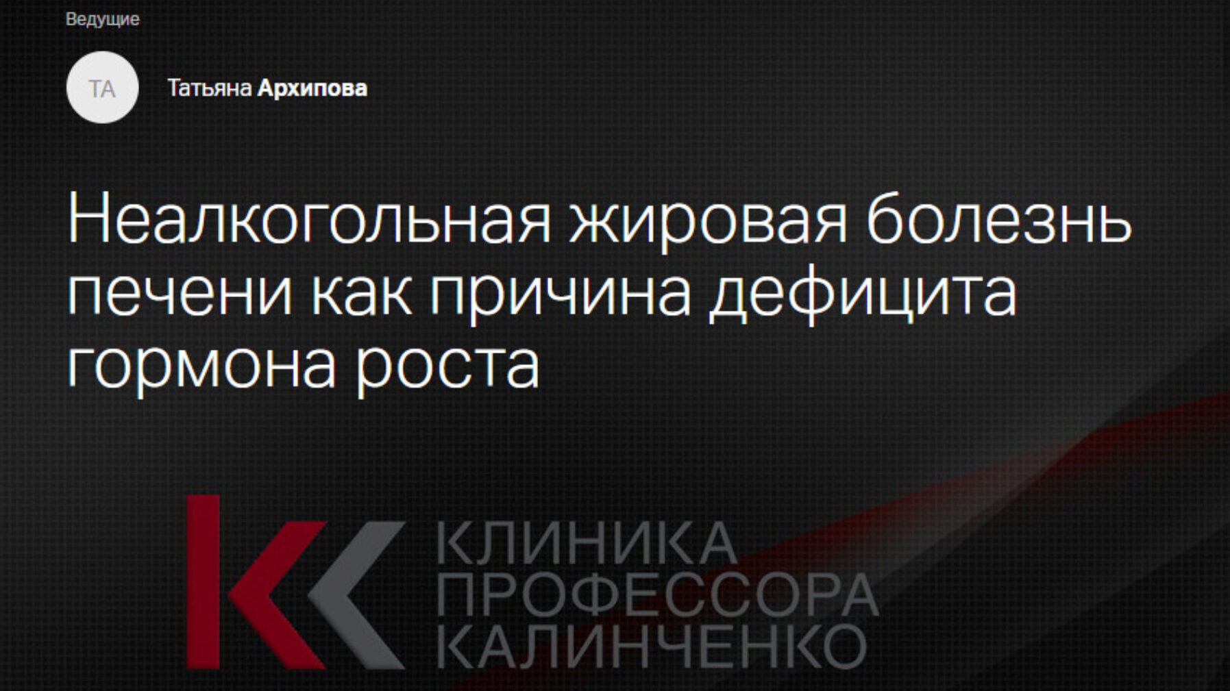 Татьяна Архипова «Неалкогольная жировая болезнь печени как причина дефицита гормона роста» — Клиника Калинченко