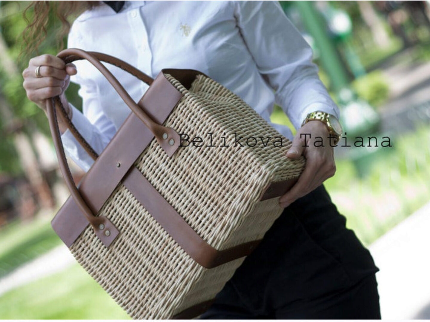 Татьяна Беликова «Плетеная сумка-чемодан из бумажной лозы и кожи» — Плетение