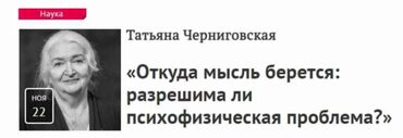 Что такое «ощущения от первого лица» и в чём парадокс разрыва между идеальным и материальным? Есть ли объяснение тому, как мысль порождается материей мозга? Кто внёс самый значительный вклад в исследование мозговых механизмов сознания? И на каком этапе находится сегодня одно из центральных направлений в науке о жизни? Вот главная тема новой лекции ведущего российского нейролингвиста профессора Татьяны Черниговской.