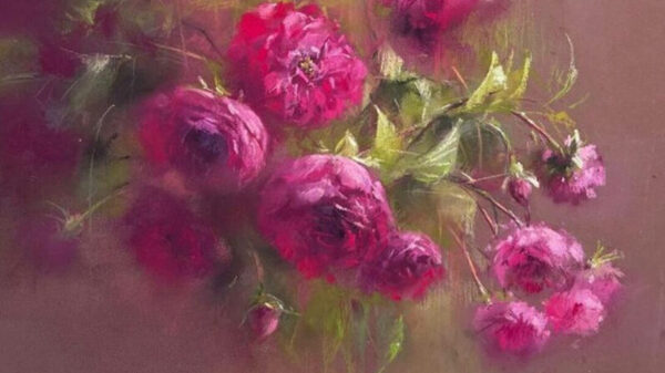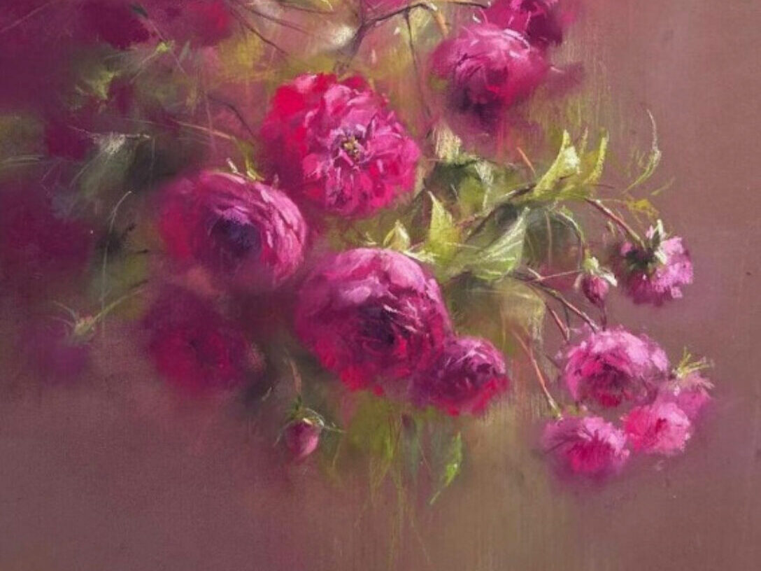 А основное эфирное время будет посвящено рисованию яркого букет садовых роз.
