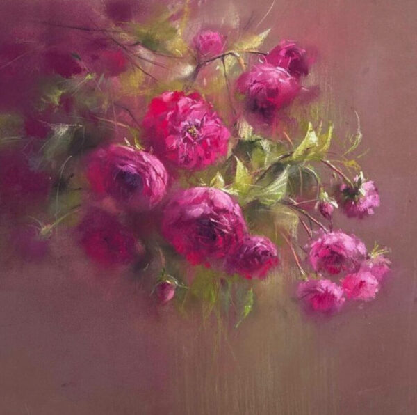 - Нарисуете яркий букет садовых роз, наполненный цветом и светом.