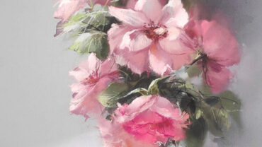 С помощью разных инструментов и приёмов научимся создавать акварельные эффекты на имприматуре, которую будем создавать на абразивной бумаге. В итоге напишем яркие розы, освещенные солнцем и красивые падающие тени.