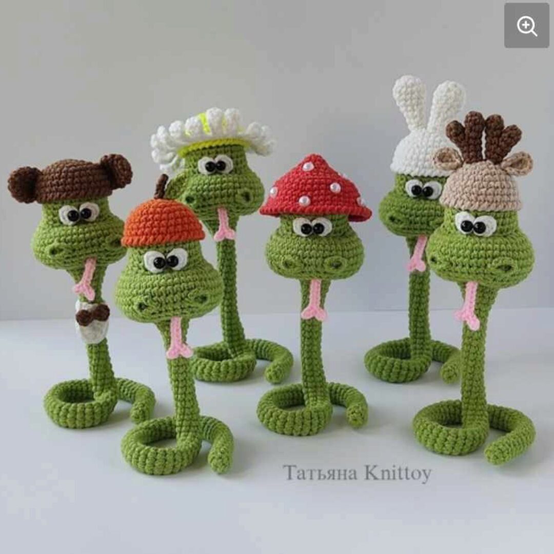 Мастер-класс в формате PDF. 27 страниц Фото всех этапов (видео нет) Длина змеи примерно 26-30см (в зависимости от плотности вязания) Проволочный каркас В мк входят: описание вязания самой змеи и 4 вида головных убора на нее.