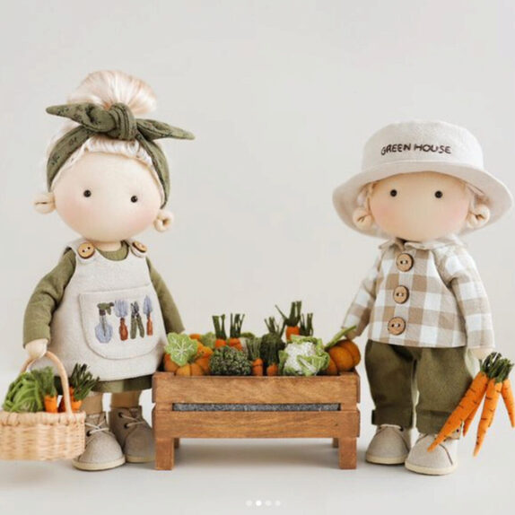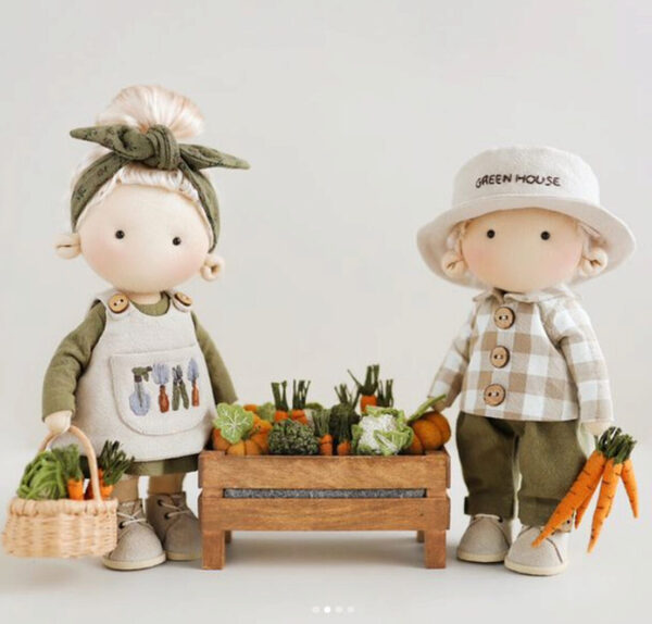 Будем плести соломенные шляпки и корзинки, мастерить грядки, кудрявить овцу, создавать из тканей брокколи и гортензии! Ну и, конечно, шить платья, фартуки и жакеты.