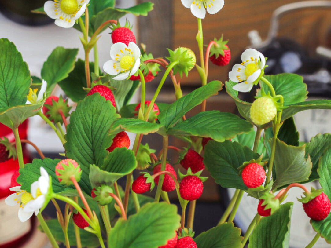 И второй вариант: соберём с вами композицию с растущей земляникой в кашпо. Сделаем абсолютно реалистичную имитацию земли, посадим нашу Землянику в кашпо и задекорируем.