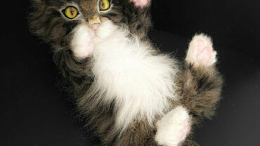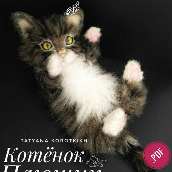 Выкройка котенка 20 см с пошаговой инструкции на русском языке. Мастер-класс в pdf формате на 22 страницах содержит выкройку, список материалов и подробную инструкцию как сшить, набить, сделать утяжки, глазки и веки, вставить скелет, сделать ушки, носик и подушечки лап. Для удобства в этой игрушке