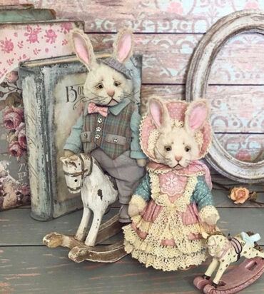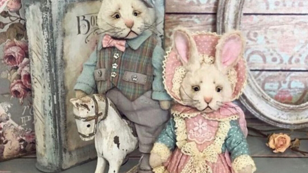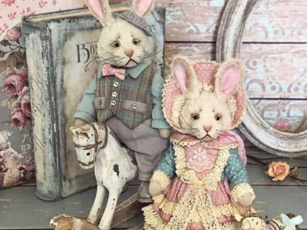 Курс состоит из 40 постов-видео уроков, поделённых на две части в первой части я подробно, начиная с материалов и инструментов показываю, как скроить, сшить, скульптурно набить и оформить зайку, а во второй части покажу, как я шью одежду, для мальчика (рубашку, брючки, жилет) и для девочки( платье, капор, панталоны)