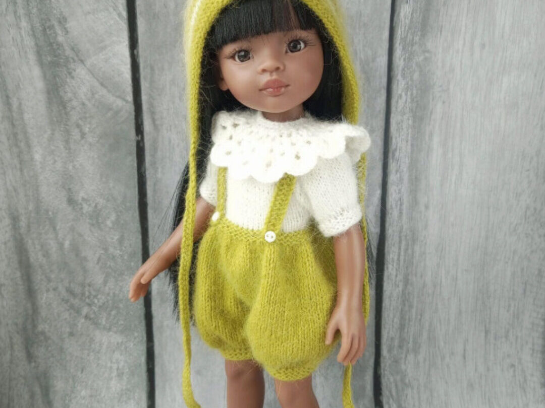 Подробное описание с фотографиями по вязанию костюмчика для кукол Паола Рейна 32-34 см. Рекомендуемая пряжа Ализе Ангора голд(100 гр-550 м) или пряжа с пухом норки(50 гр-350 м) и спицы 1,5 мм. Формат файла PDF.