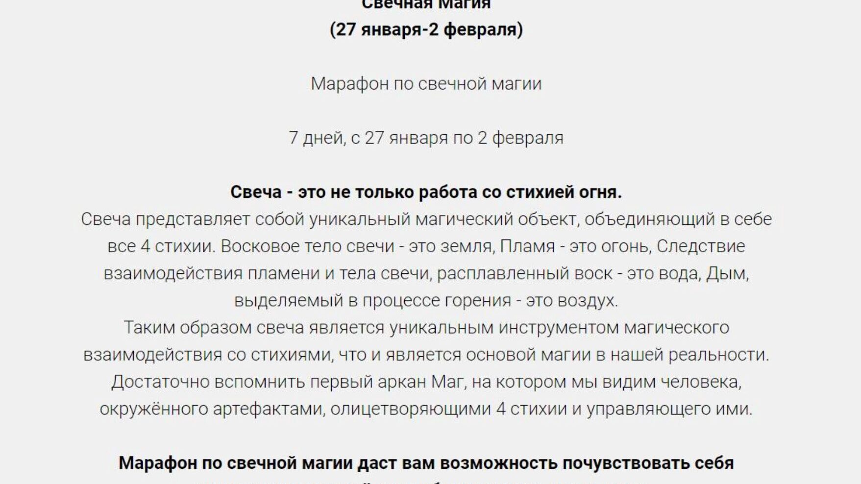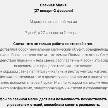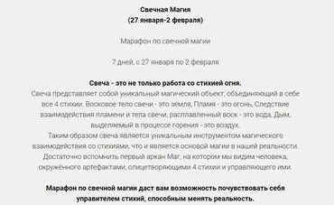 Описание мини-курса «Свечная магия» Мини-курс «Свечная магия предназначен для тех людей, которые интересуются магией, как таковой, которым интересны свечи не только в качестве предмета интерьера, но и как инструмент работы с ситуациями и способ изменения реальности. Для тех же, кто уже практикует,