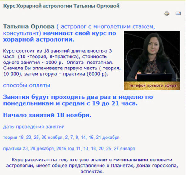Отзывы о курсе «Хорарная Астрология 3» от Татьяны Орловой