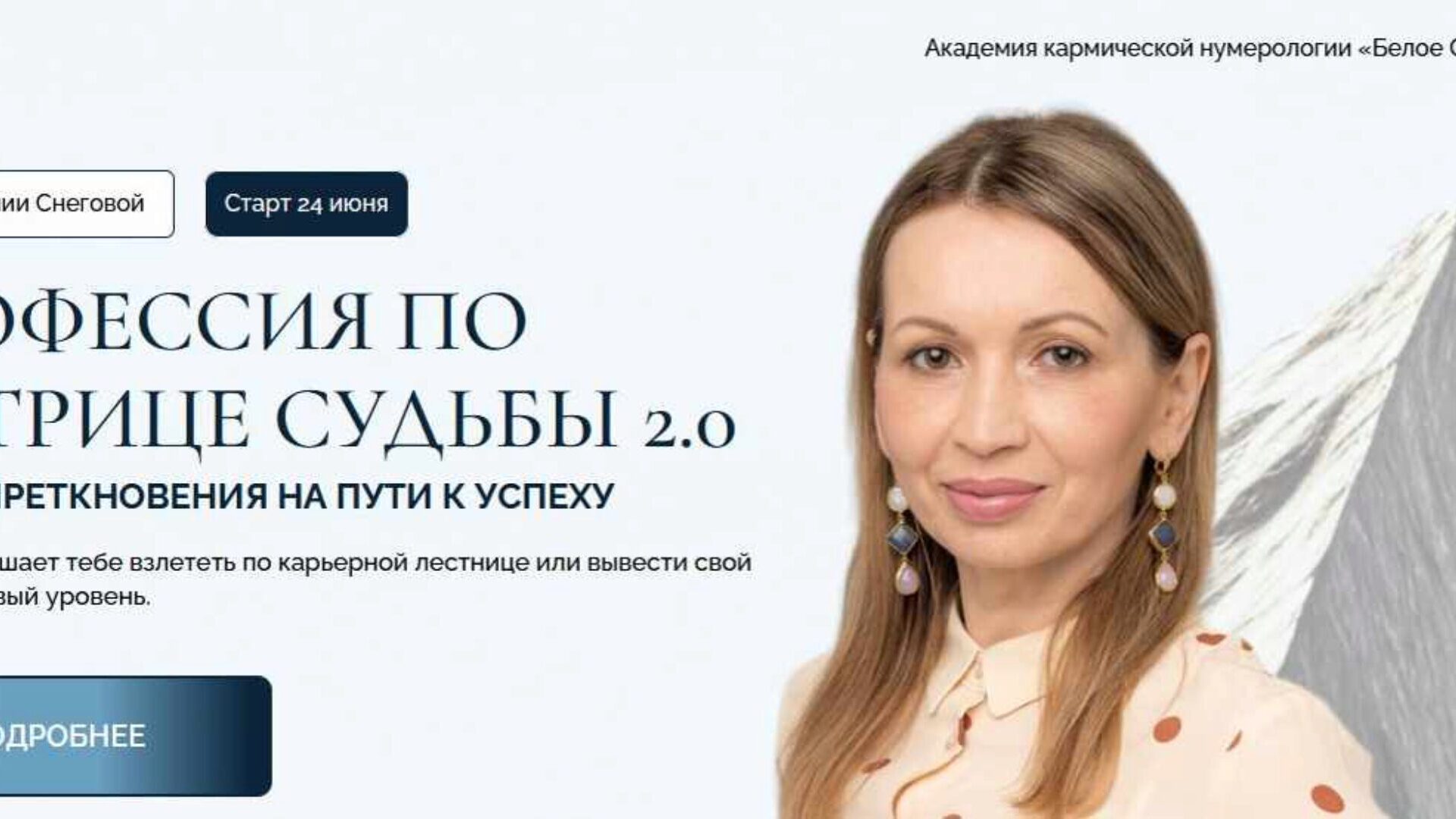 УРОВЕНЬ ЗНАНИЙ: 4 Только для сертифицированных специалистов Школы Авторский курс Юлии Снеговой «22 Кода Судьбы» Тренинг создан для тех, кто хочет глубже понять, пропустить через себя, прочувствовать каждую из Энергий, увидеть, как они влияют на разные сферы жизни, и найти способы выведения Энергий
