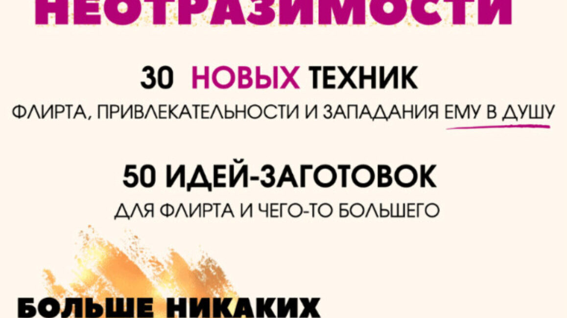 8 уникальных уроков 1. Флирт в крови 2. Социальный флирт 3. Флирт Дресскод 4. Флирт на уровне тела 5. Вербальный флирт 6. Секси флирт 7. Флирт секретный техники 8. Флирт и Мужчины