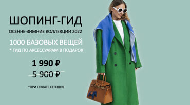 Вы получите два гайда, на российские и иностранные бренды СКОЛЬКО НУЖНО ВРЕМЕНИ ЧТОБЫ : Отсмотреть все осенне-зимние коллекции одежды и аксессуаров Определить вещи, которые станут удачными и рентабельными и покупками для стильного гардероба-конструктора Отсечь все ненужное, неактуальное, устаревшее
