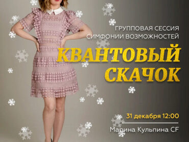 Дата: 25-31 декабря По традиции в предверии Нового года Марина проведёт свой легендарный трансформационный марафон «Квантовый скачок». Надоело ползти к своему светлому будущему? Что если настало время совершить космический рывок? Готовы?! Тогда до встречи на марафоне!