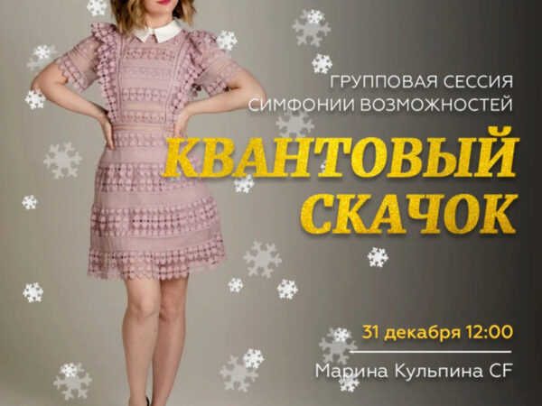 По традиции в предверии Нового года Марина проведёт свой легендарный трансформационный марафон «Квантовый скачок». Надоело ползти к своему светлому будущему? Что если настало время совершить космический рывок? Готовы?! Тогда до встречи на марафоне!