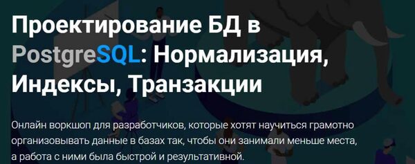 Что даст вам этот курс: Курс по работе с базой данных PostgreSQL в различных средах Курс обеспечивает глубокое погружение в PostgreSQL, чтобы проектировать базы данных так, чтобы впоследствии не приходилось тушить пожары в результате не оптимально заложенных основ. Цель курса — научить слушателя
