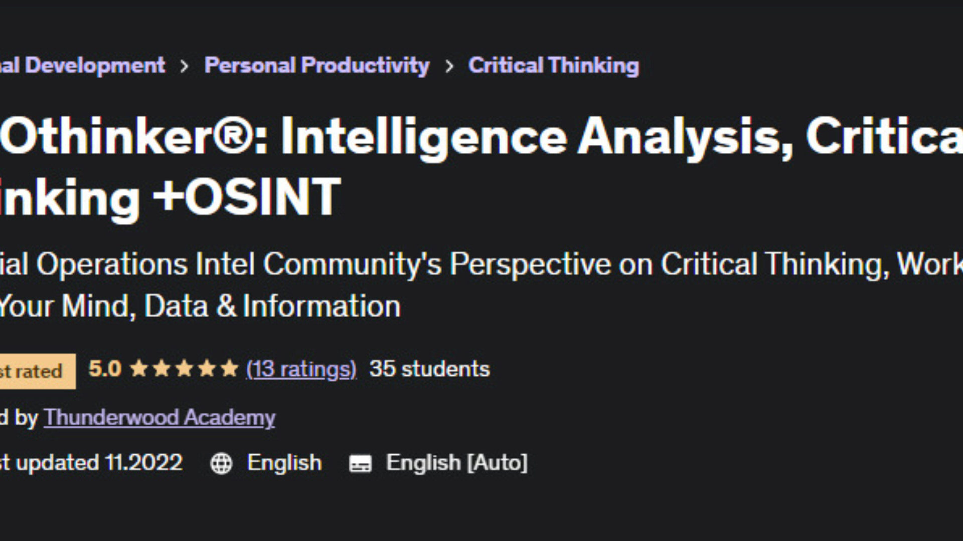 Thunderwood Academy «PROthinker®: анализ интеллекта, критическое мышление + OSINT» — Udemy