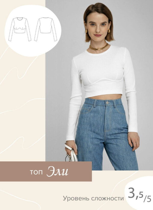 Что входит в комплект выкройки Подробная текстовая инструкция с пошаговыми фотографиями технологии пошива Файл PDF для печати выкройки на принтере в формате А4 Файл PDF для широкоформатной печати на плоттере 800 мм Описание модели Топ прилегающего силуэта с длинными рукавами. Вырез горловины