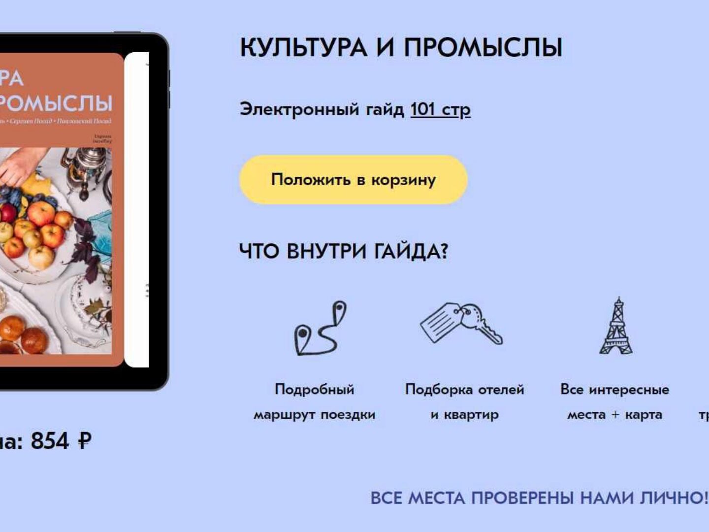Электронный гайд 53 стр. Что внутри гайда? Подробный маршрут поездки Подборка отелей и квартир Все интересные места + карта Инфо по транспорту, ценам, сезону Все места проверены нами лично! Гайд с 12 маршрутами прогулок по Москве. Здесь всё, чтобы исследовать город и полюбить его еще больше: тихие