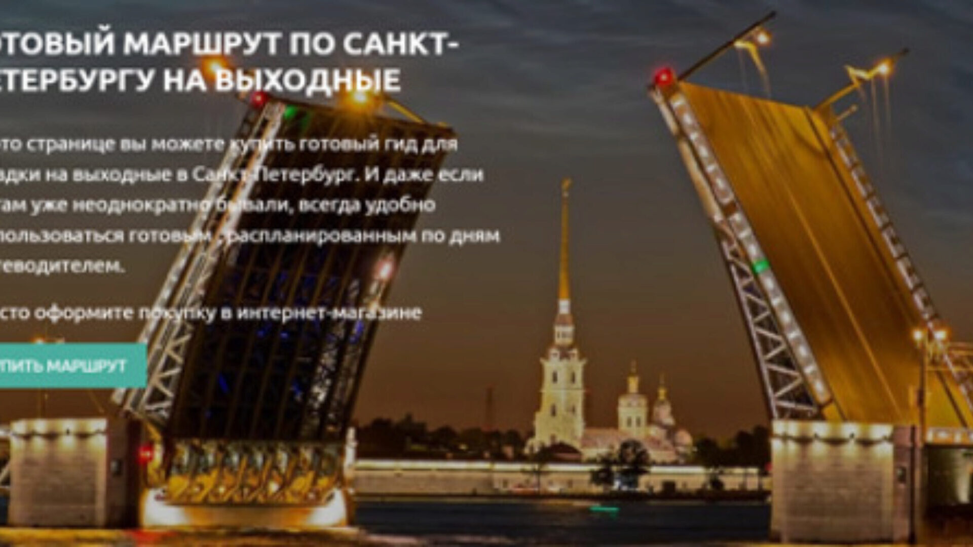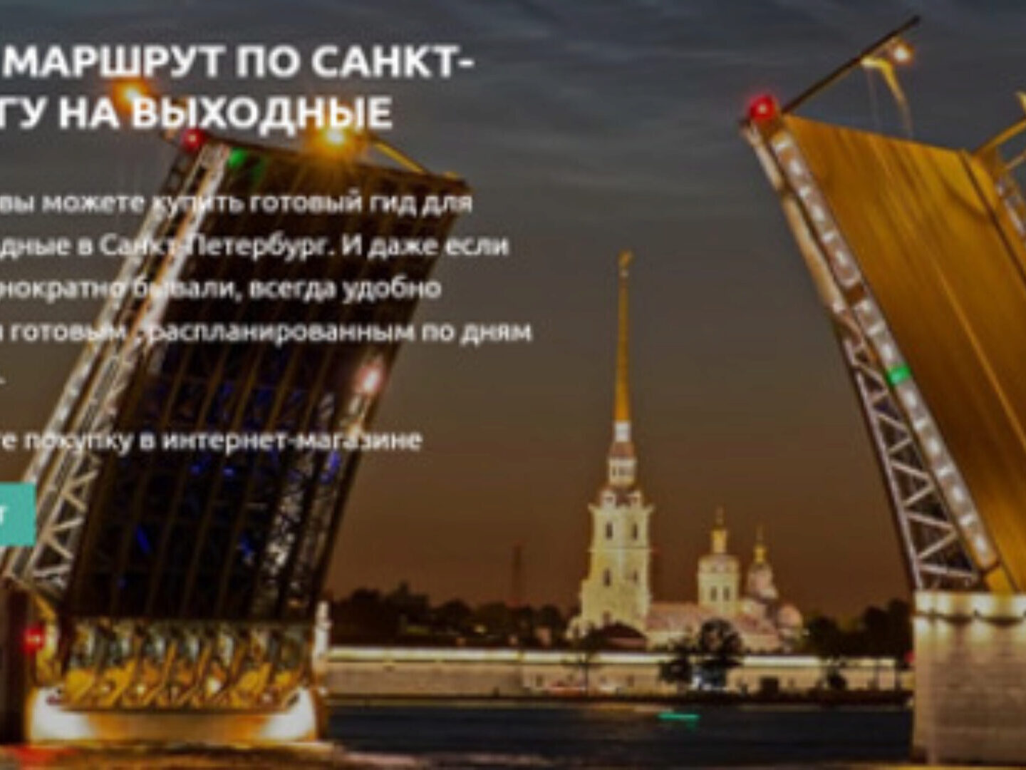 Электронный гайд 58 стр ЧТО ВНУТРИ ГАЙДА? Подробный маршрут поездки Подборка отелей и квартир Все интересные места + карта Инфо по транспорту, ценам, сезону Гайд с четырьмя маршрутами по Петербургу для тех, кто уже много раз там был. Места, куда ходят местные, нетуристические районы и пара десятков