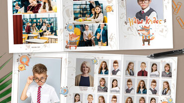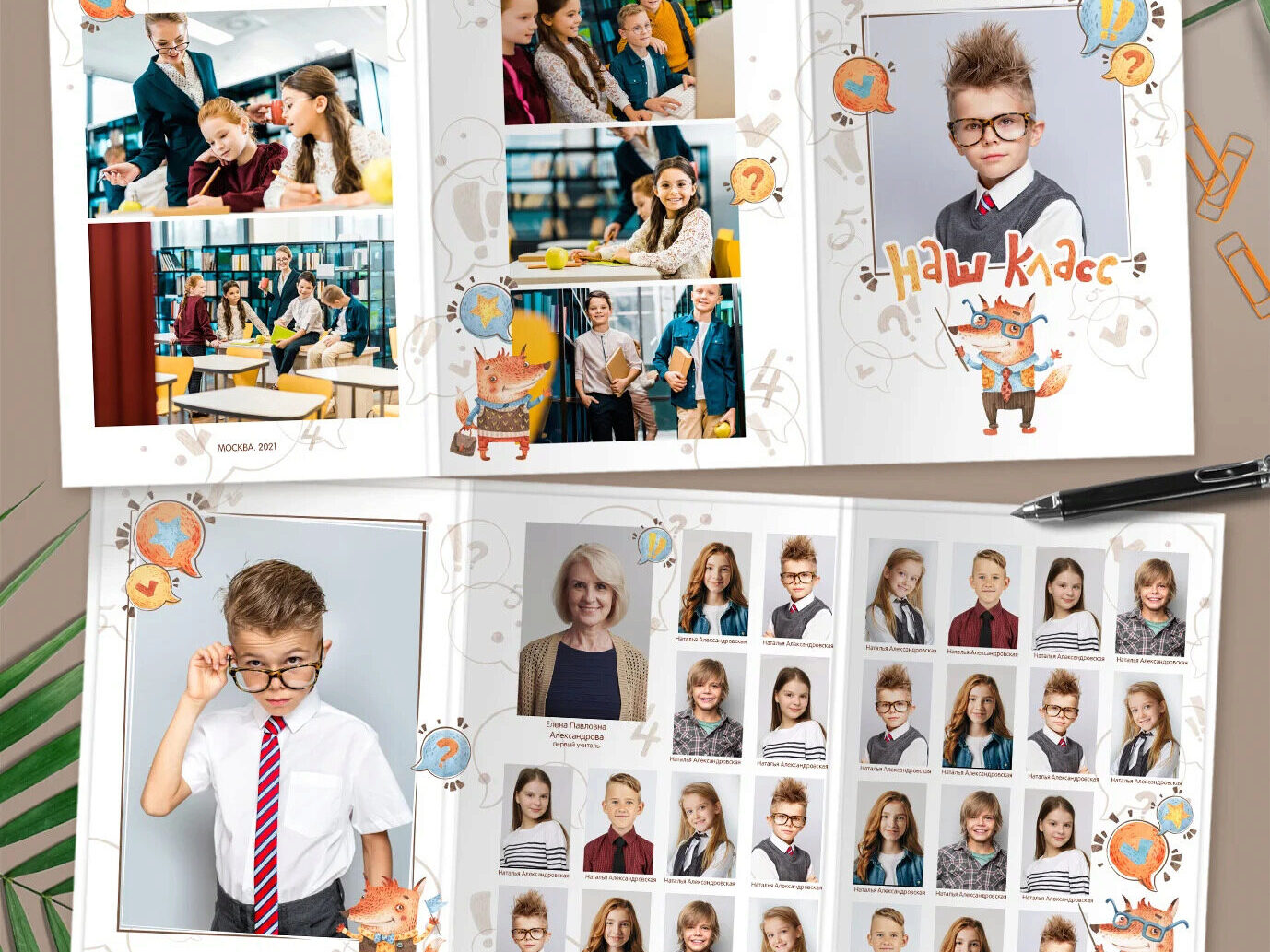 Есть в двух вариантах - для общей верстки на весь класс и для индивидуальной - с портретами на обложке и внутри.