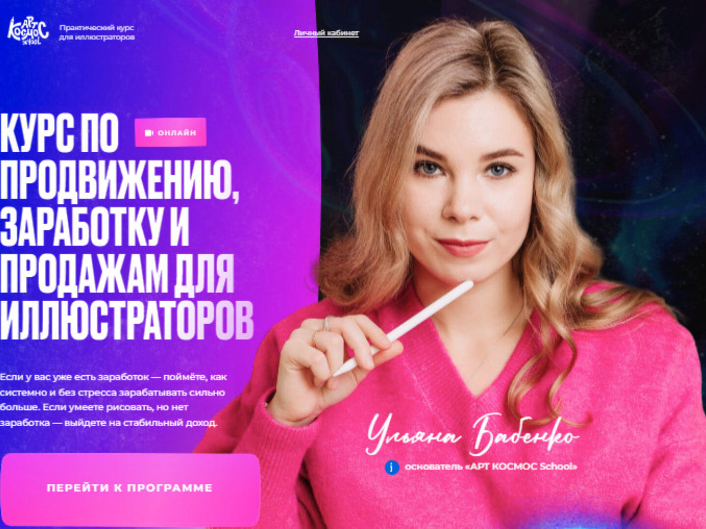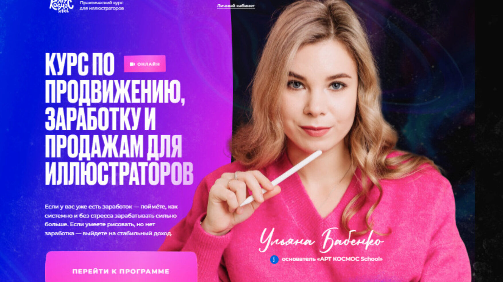 Курс по продвижению, заработку и продажам для иллюстраторов. Тариф Космодром (Ульяна Бабенко) Если у вас уже есть заработок — поймёте, как системно и без стресса зарабатывать сильно больше. Если умеете рисовать, но нет заработка — выйдете на стабильный доход. Этот курс не про обучение рисованию,
