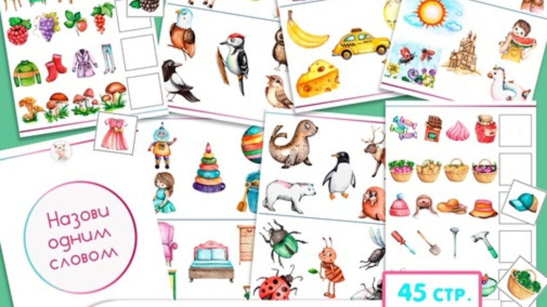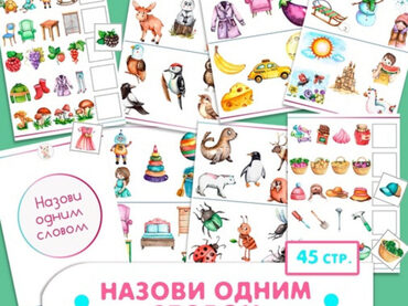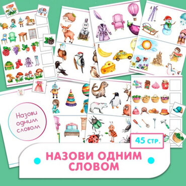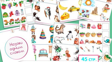 В сборнике есть известные группы такие как игрушки, овощи, фрукты, ягоды, насекомые, инструменты..... + обобщение по цвету + обобщение из чего сделан предмет + обобщение по временам года + задания на продолжения ряда.