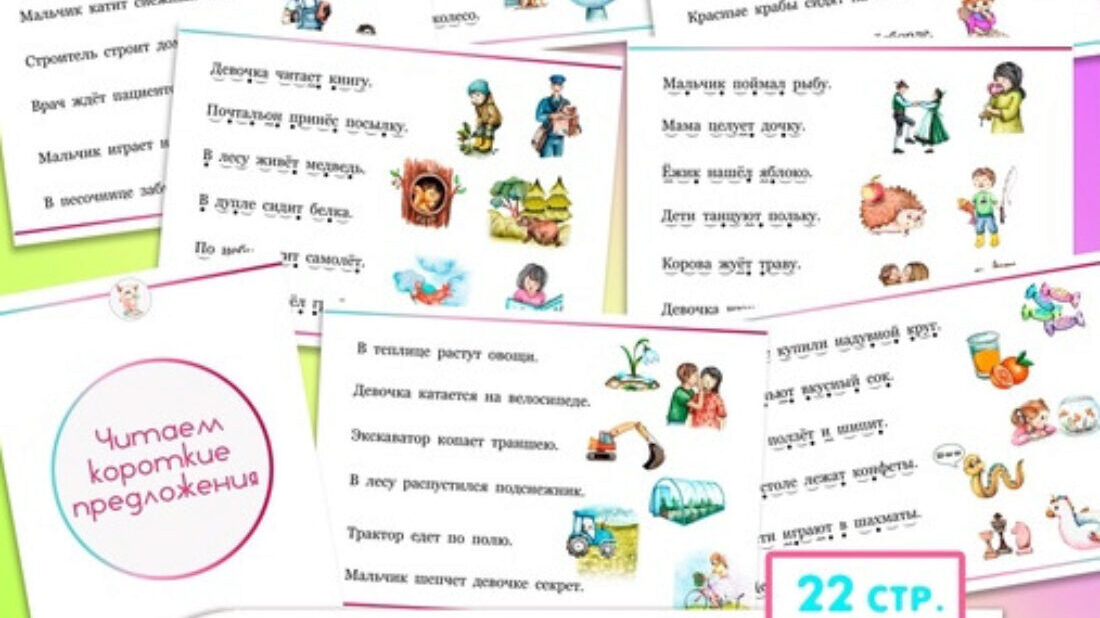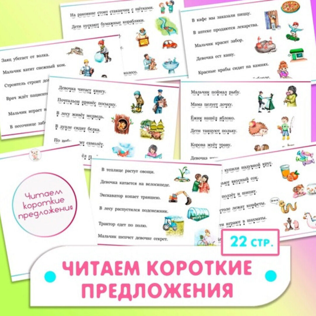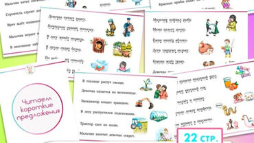 Продолжаем учиться читать предложения Еще один сборник для чтения коротких предложений «Читаем короткие предложения. Часть 2». Если ребёнок уже умеет читать слова, но читать текст не получается. Тогда начните с небольших коротких предложений. О сборнике: Под каждым словом есть схема, которая
