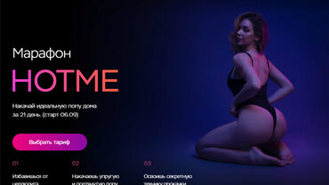 За 21 день ты: Избавишься от целлюлита Накачаешь упругую и подтянутую попу Улучшишь форму ягодиц, освоишь секретную технику прокачки Сохранишь тонкие ноги Тариф Минимальный 1 490 руб. ~560 грн. 17 тренировок для ягодиц Гайд по борьбе с целлюлитом Антицеллюлитный комплекс