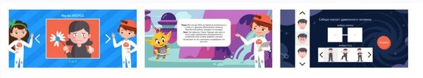 - ~ 4,5 часа занятий в формате небольших историй и интерактивных заданий, рассчитанных на младших школьников.