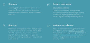 6 модулей: · Модуль 1. Знакомство с чат-ботами · Модуль 2. Создание чат-ботов на платформе Bothelp · Модуль 3. Создание чат-ботов на платформе Salebot · Модуль 4. Чат-боты в Vk · Модуль 5. Эффективное продвижение услуг · Модуль 6. Использование GetCourse при работе с чат-ботами · Индивидуальная