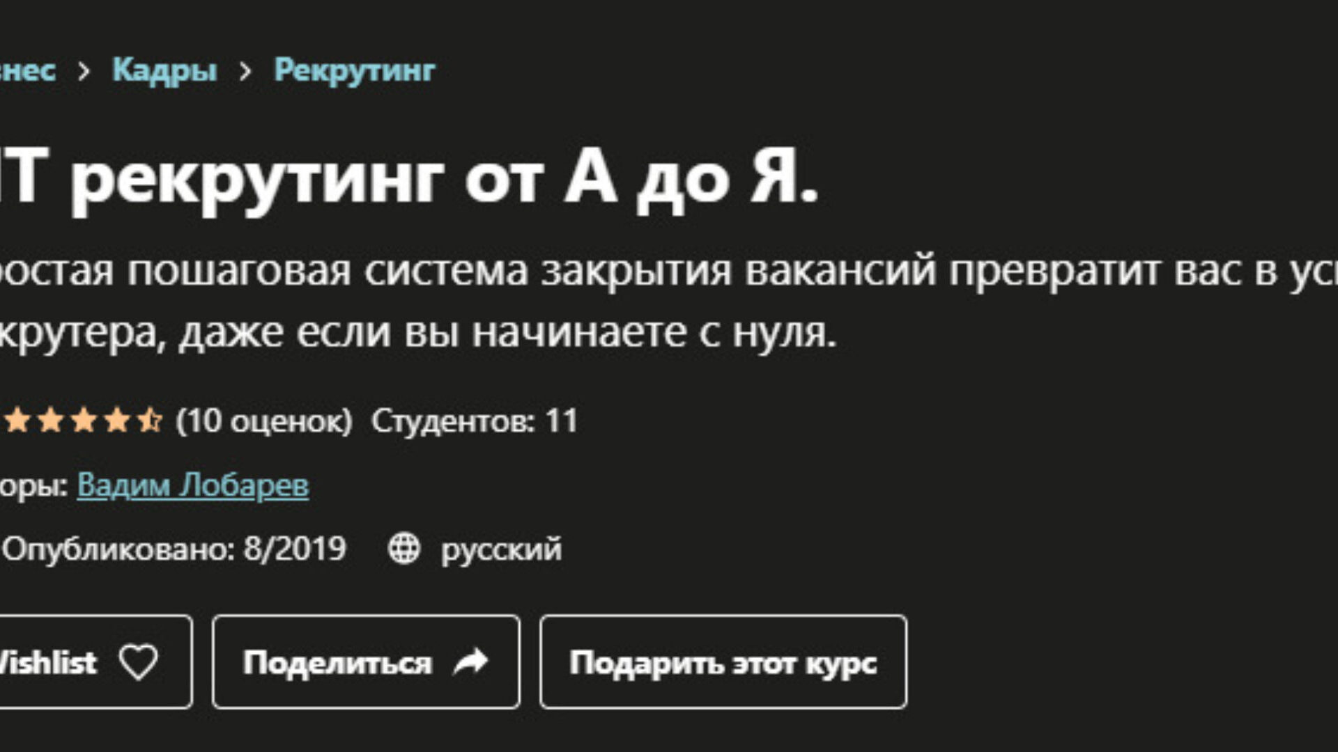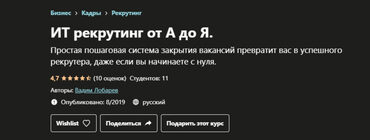 Вадим Лобарев «ИТ рекрутинг от А до Я» — Udemy