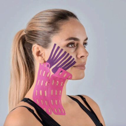 - Тейпирование для общей трофики покровной ткани (восстановление тонуса и питания) лица и шеи