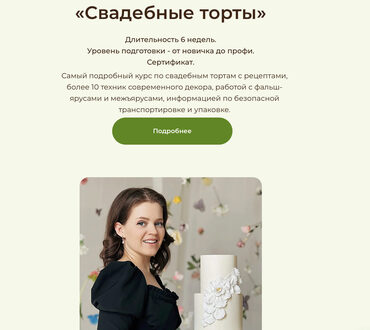 Отзывы о курсе «Свадебный торты. Тариф Самостоятельный» от Валентины Древиной