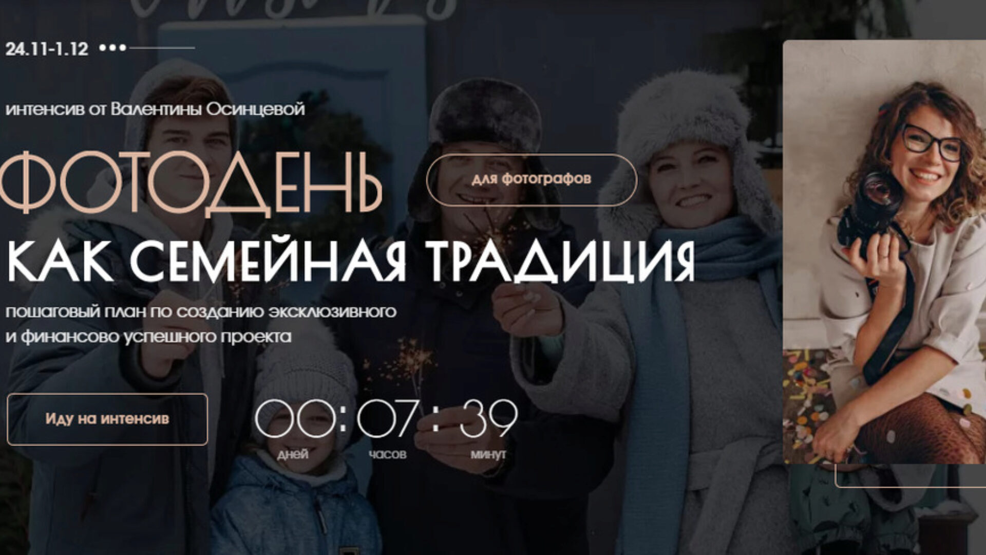 Валентина Осинцева «Фотодень как семейная традиция. Тариф Самостоятельный»
