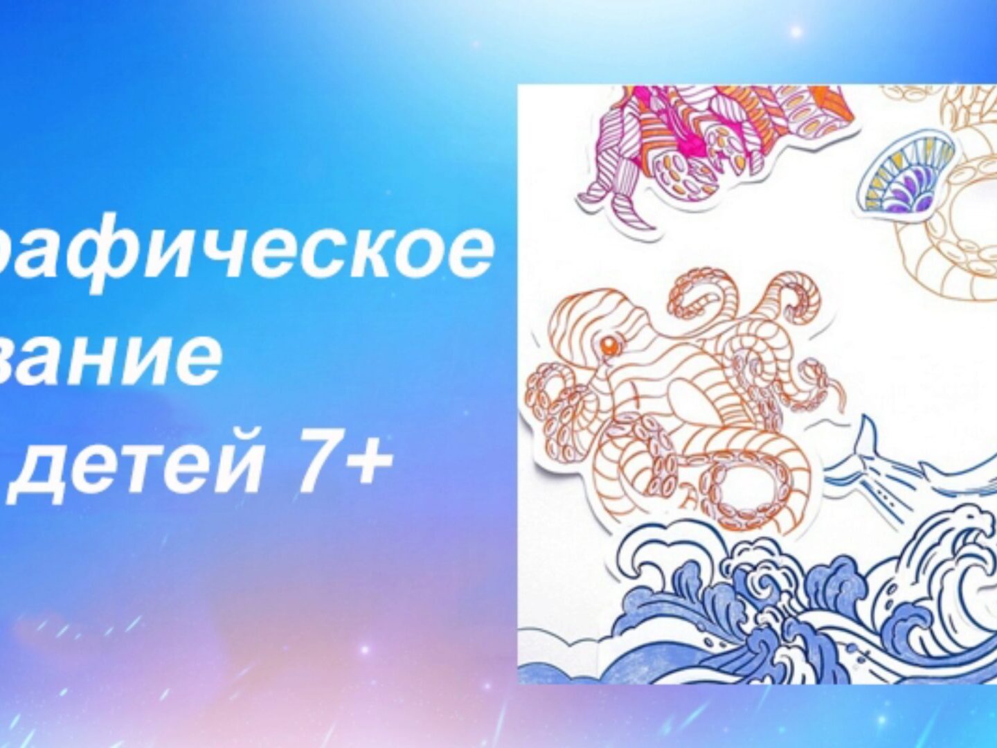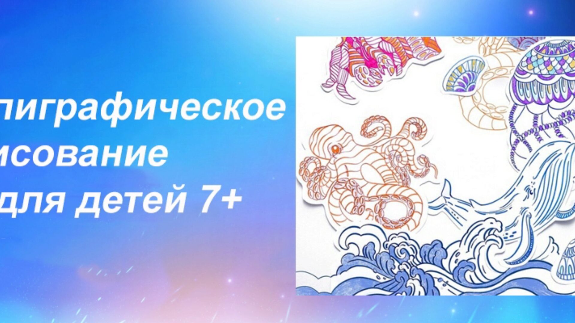 Добро пожаловать в удивительный мир каллиграфии и рисования. Каждый урок - это приключение которое поможет развить творческое мышление ребенка. Каллиграфия способствует развитию в детях навыков концентрации и усидчивости. Мы познакомимся с удивительными обитателями подводного мира, нарисуем их на бумаге и сделаем яркие композиции. Давай создадим неповторимый подводный мир.