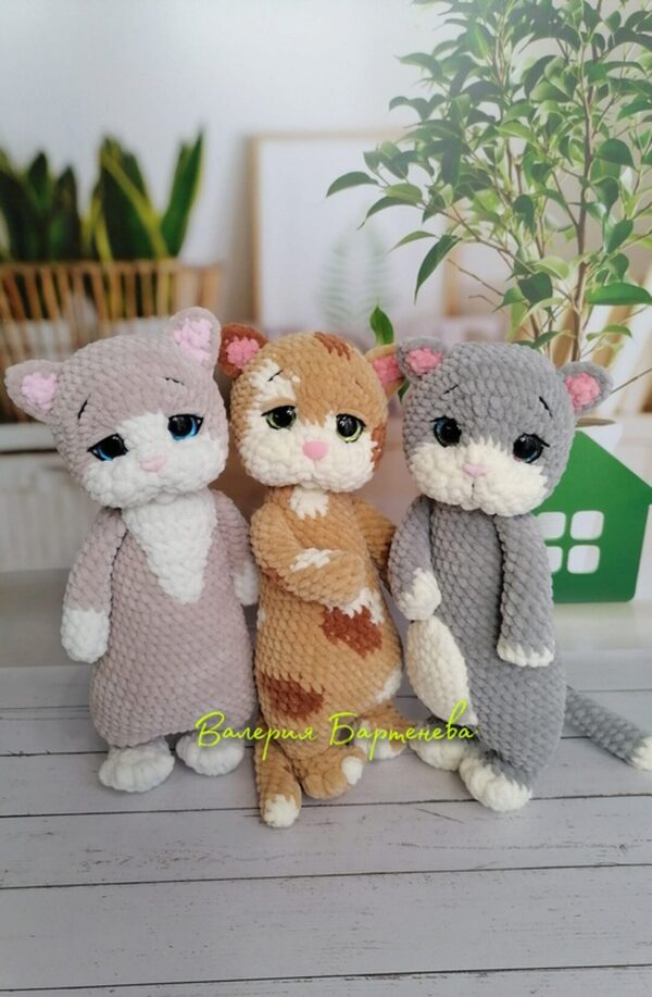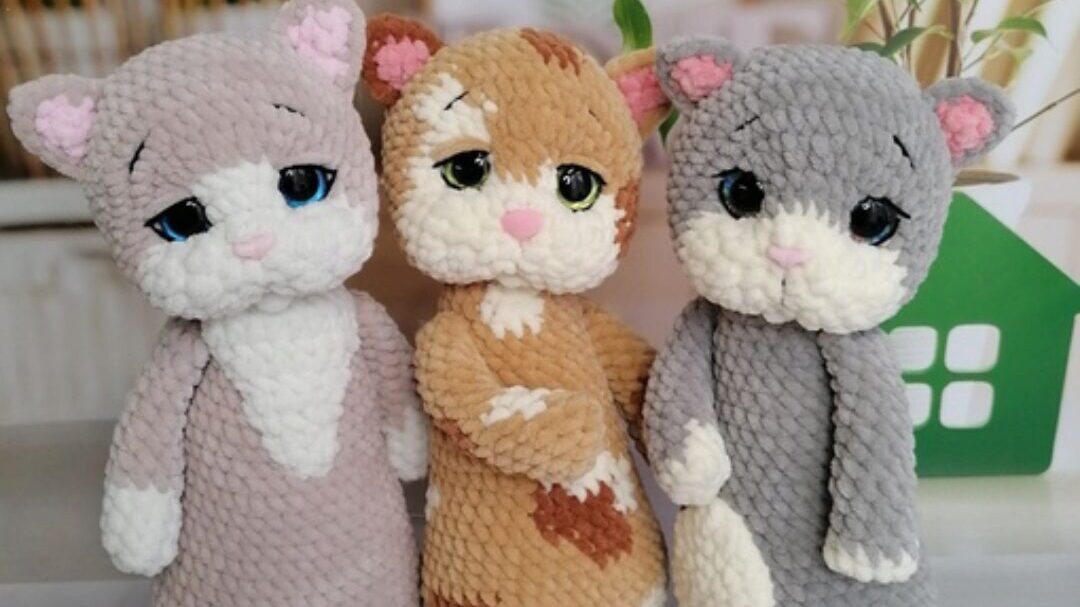 МК котики Крошки находится в закрытой группе. МК состоит из текстового описания процесса вязания игрушки и видео по основным моментам. Видео к МК записаны прикреплены записью экрана с закрытой группы ВК. При использовании указанных материалов, рост игрушки около 23см без учёта ушек. В описании так