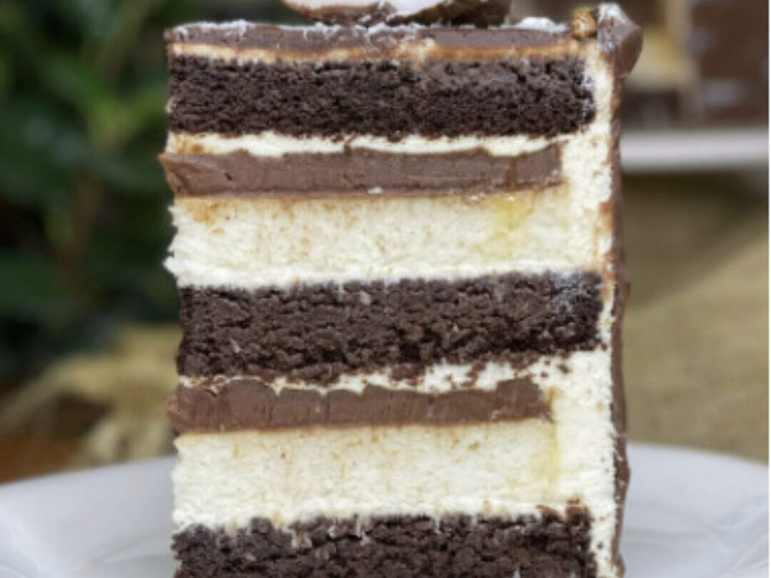 Любители шоколада точно оценят безупречное сочетание вкусов и текстур этого торта! С каждым кусочком вы получите истинное наслаждение и сможете удивить гостей и близких! Состав рецепта: 1 Влажный Шоколадный бисквит 2 Чизкейк с печеньем 3 Шоколадное кремё 4 Ванильный мусс с крошкой 5 Ганаш 1 ВЫ